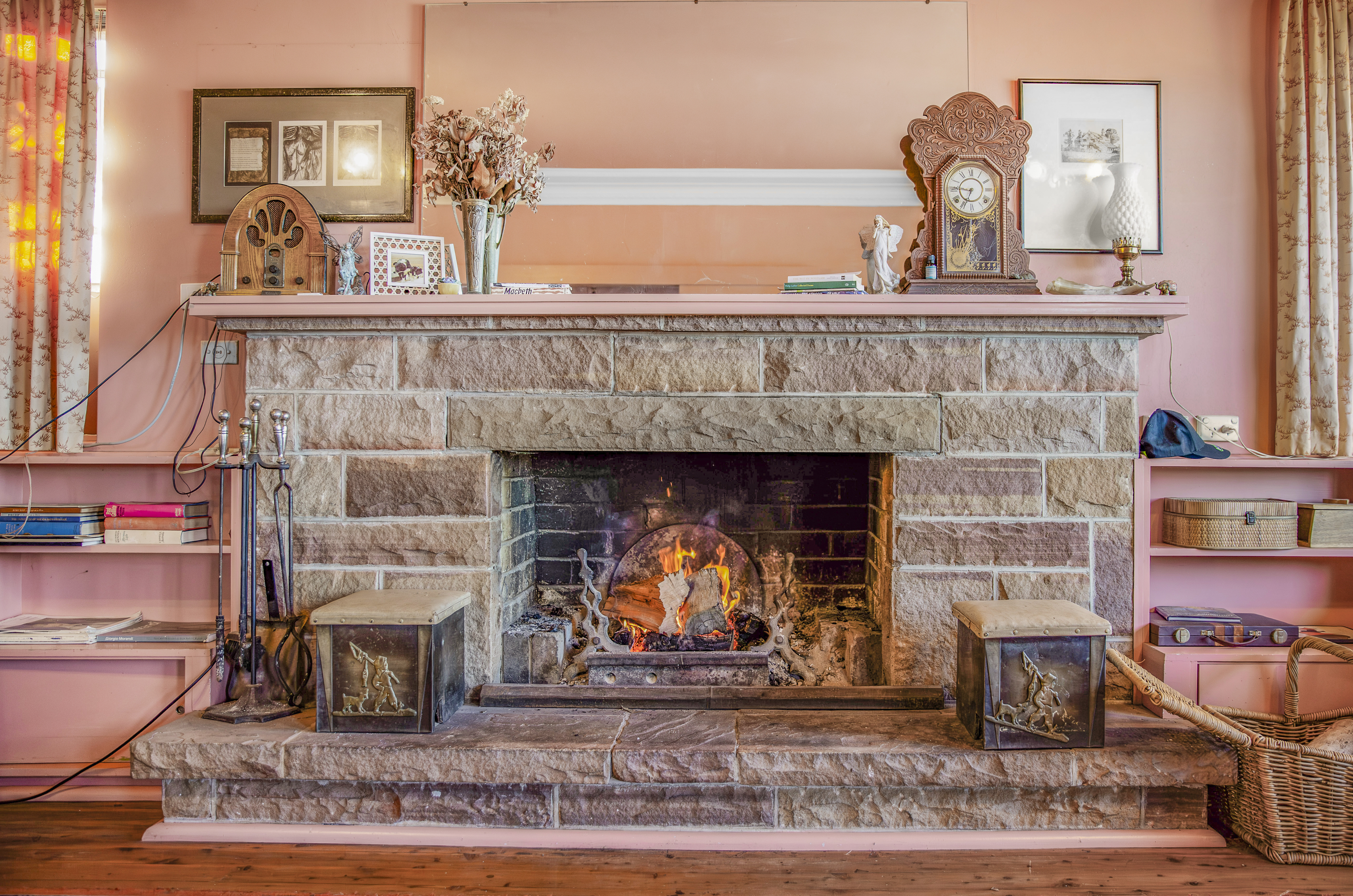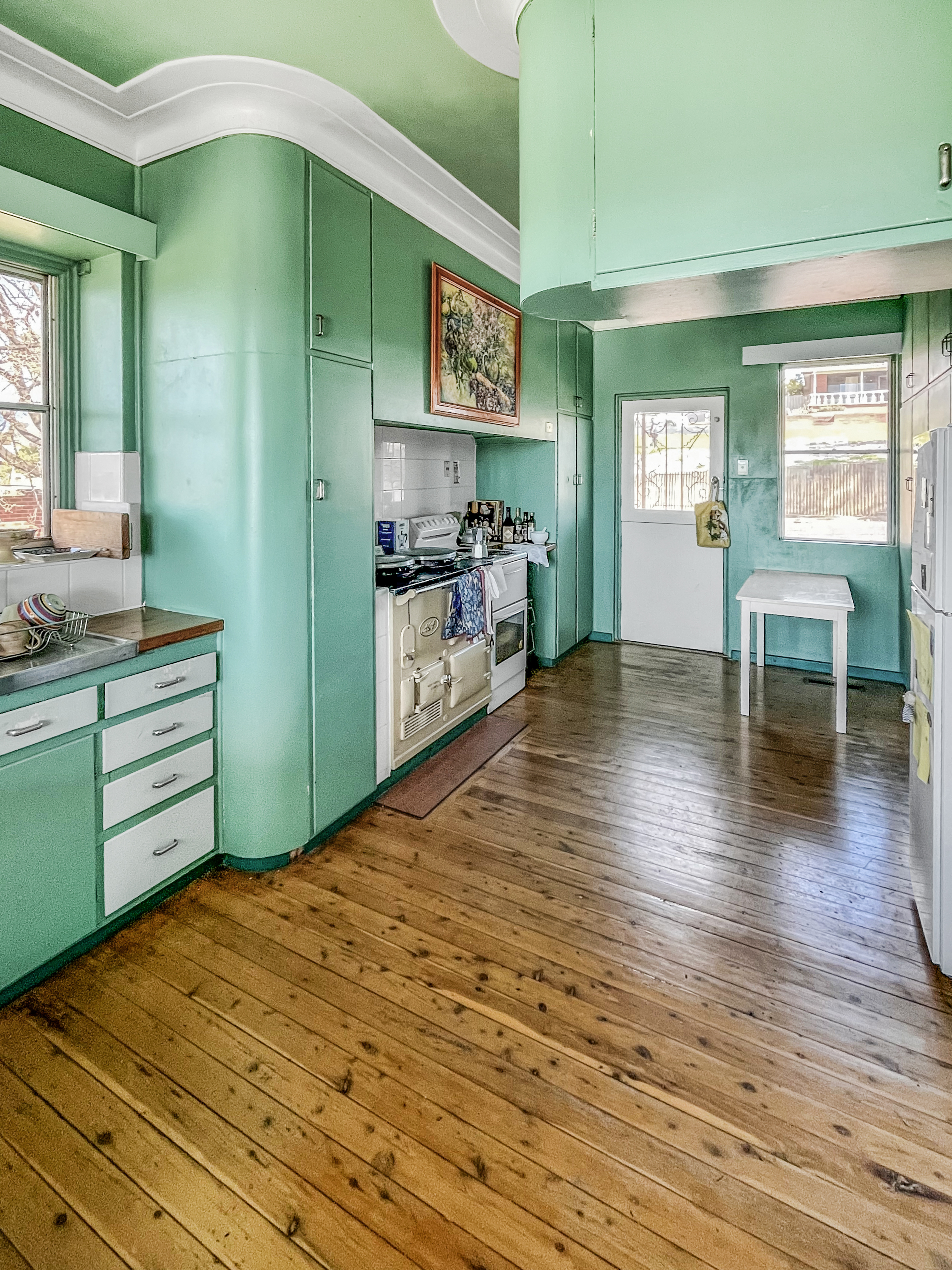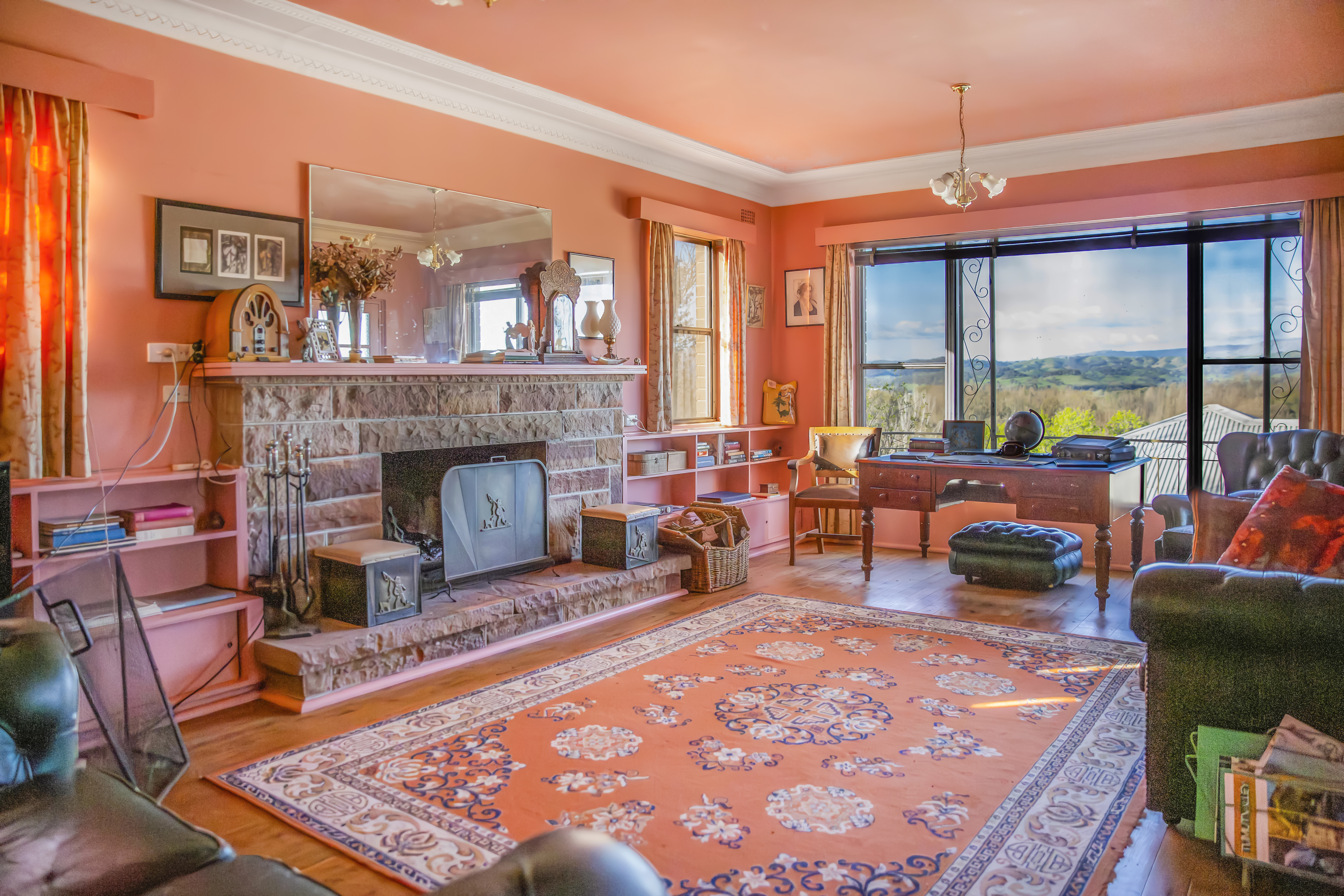 - Unique mid century design with a large light filled lounge room with focal sandstone fireplace and hearth. - Equally large light filled kitchen includes electric cooking along with original Aga fuel stove.