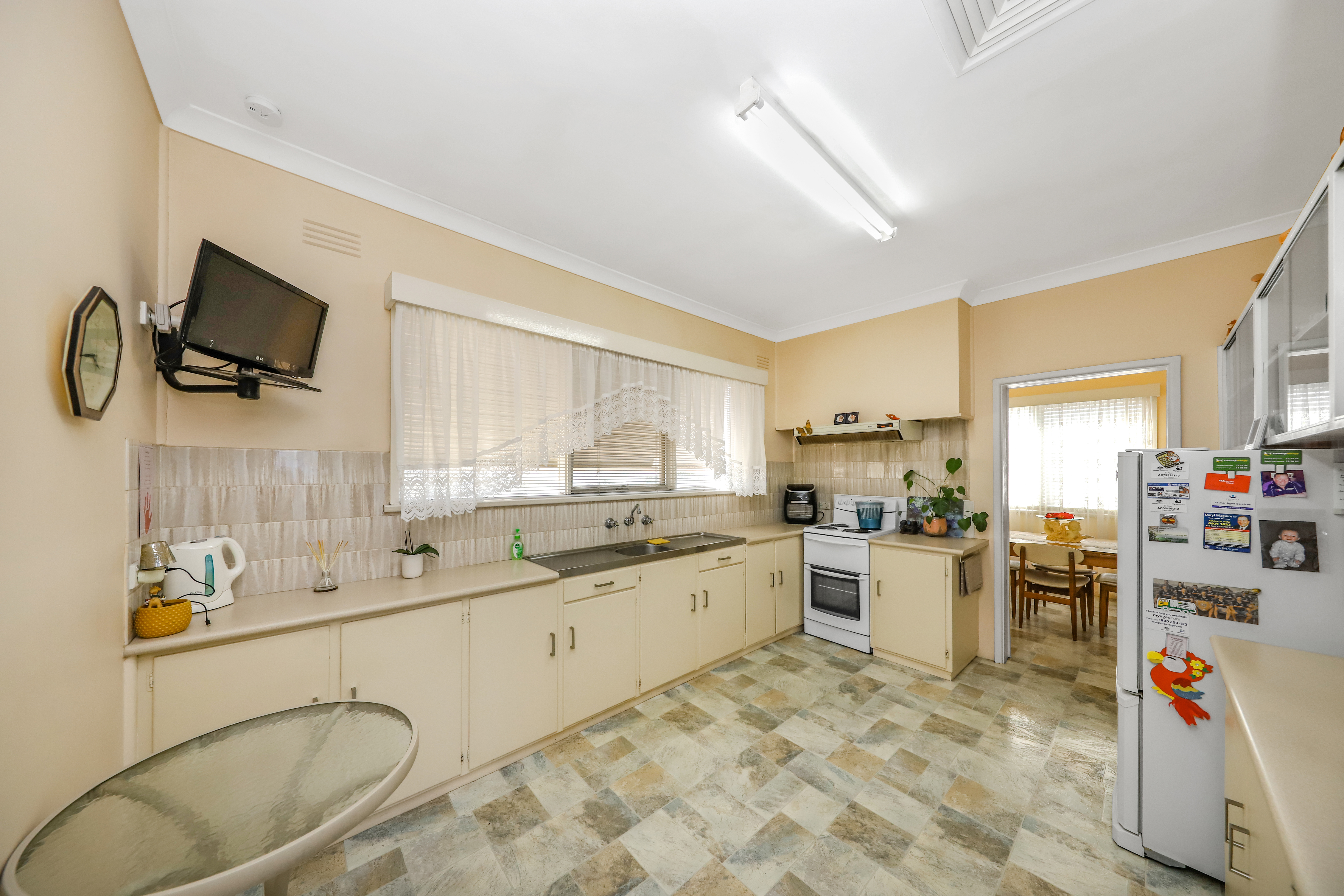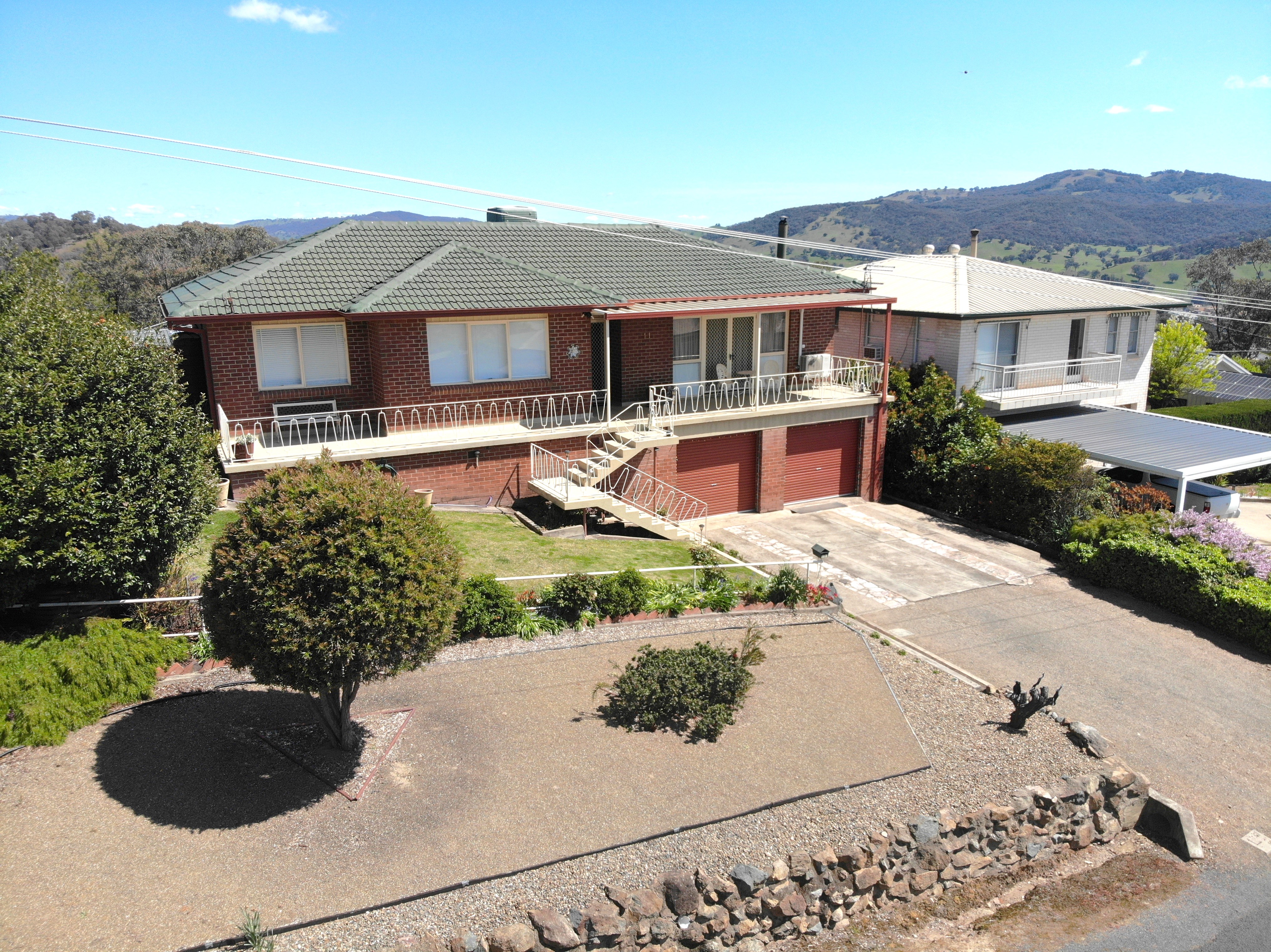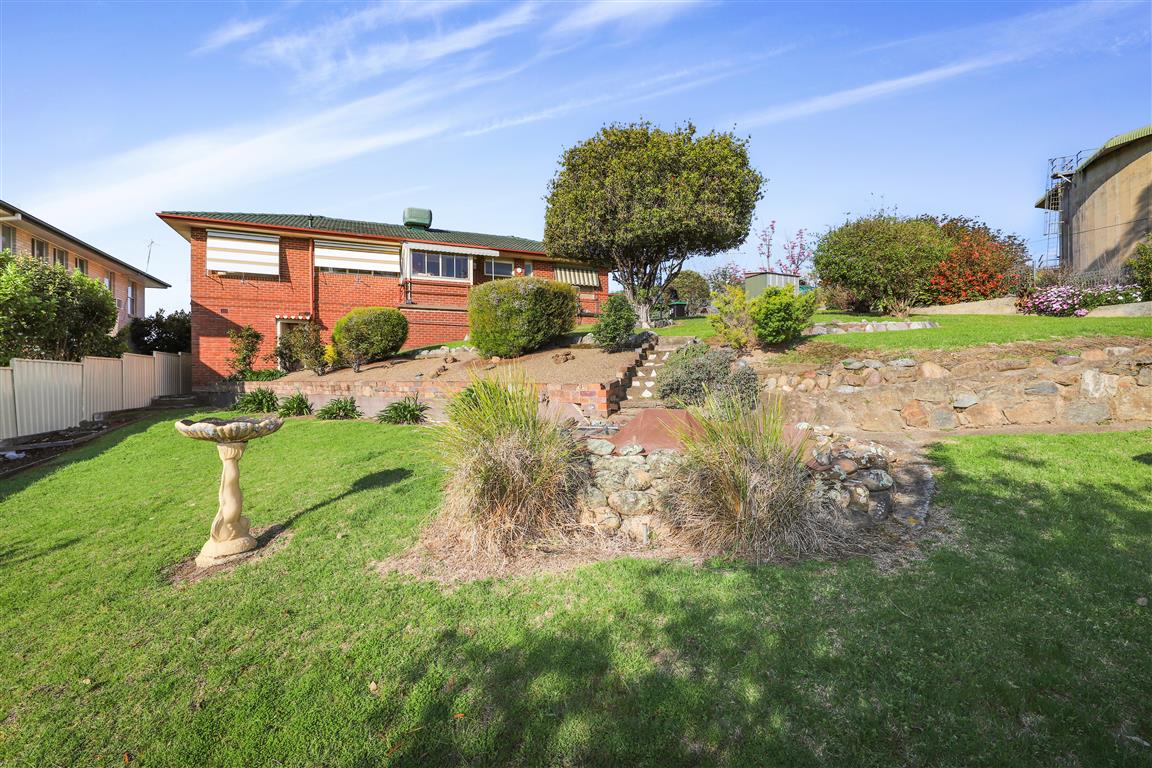 Top of the Town! - Set on a block size of approximately 790.4m2. - Three bedroom brick home with built in robes. - Kitchen featuring electric cooking + combined dining room. - Bathroom includes shower & bath + separate toilet + additional bathroom down stairs. - Wood fire heating, split system, evaporative air conditioner & ceiling fans. - Front verandah with lovely views of the hills afar. - Double garage under roofline with electric roller door to one side, decked out as an entertaining area + under floor storage. - Fully enclosed yard + pressure pump & poly tank.