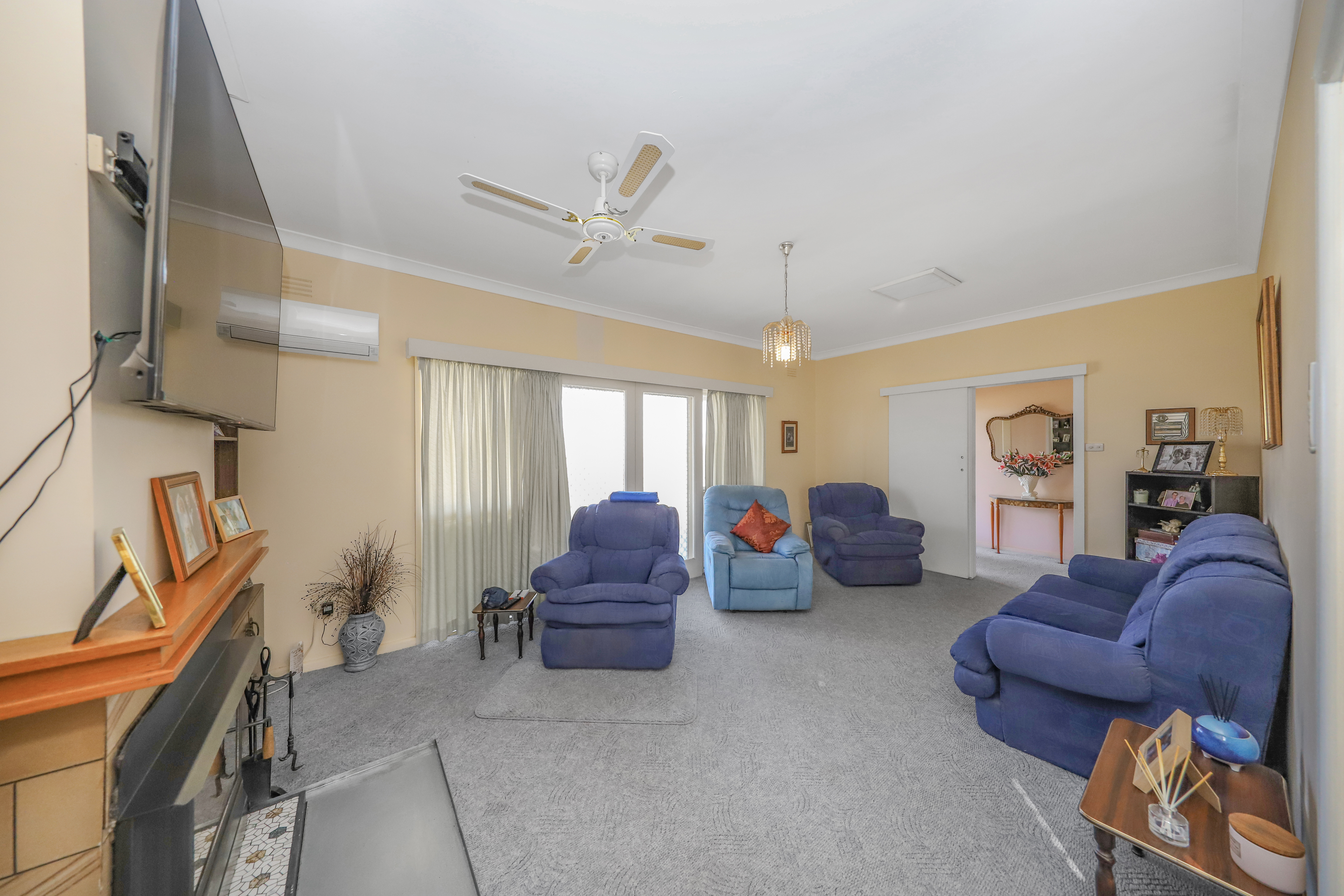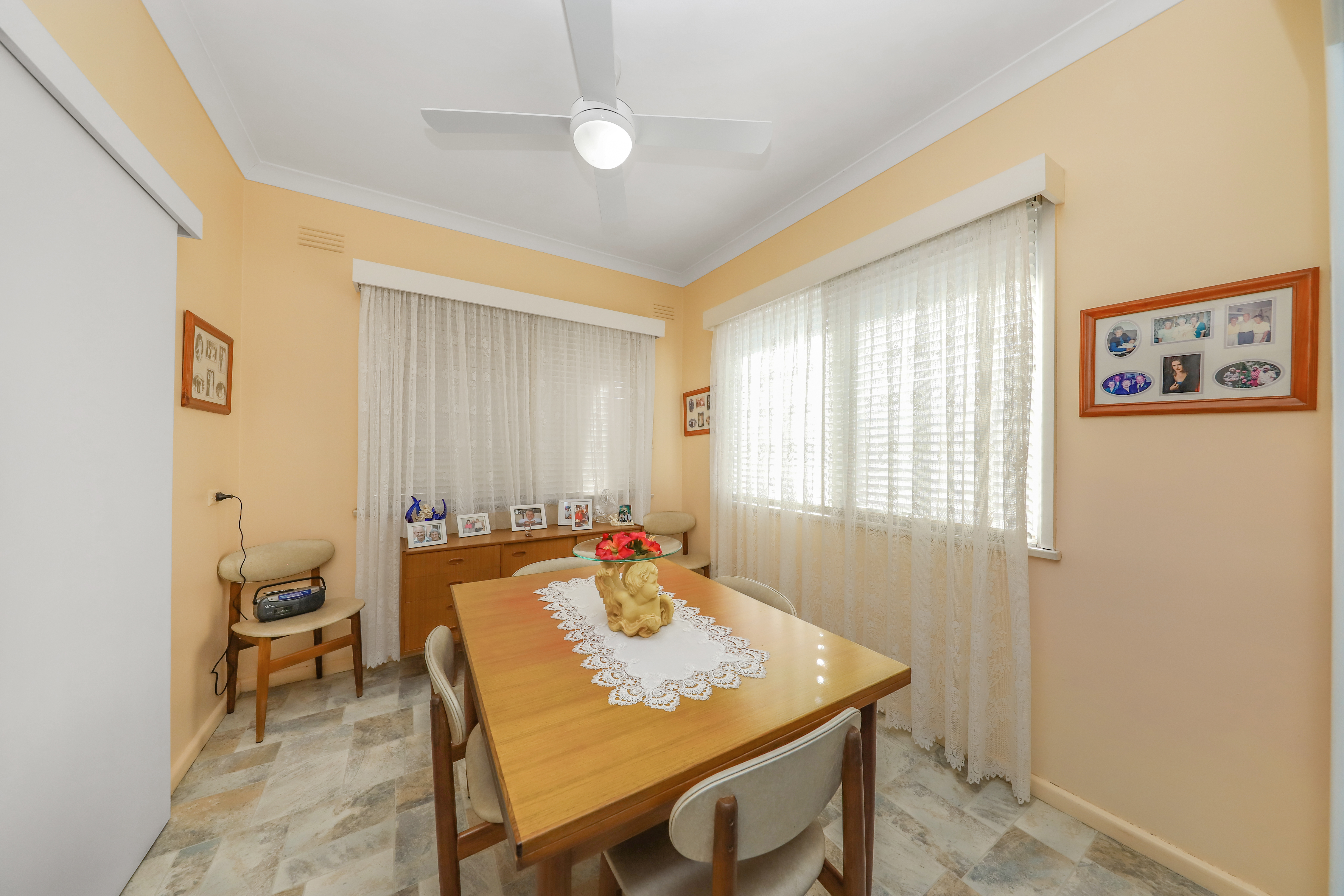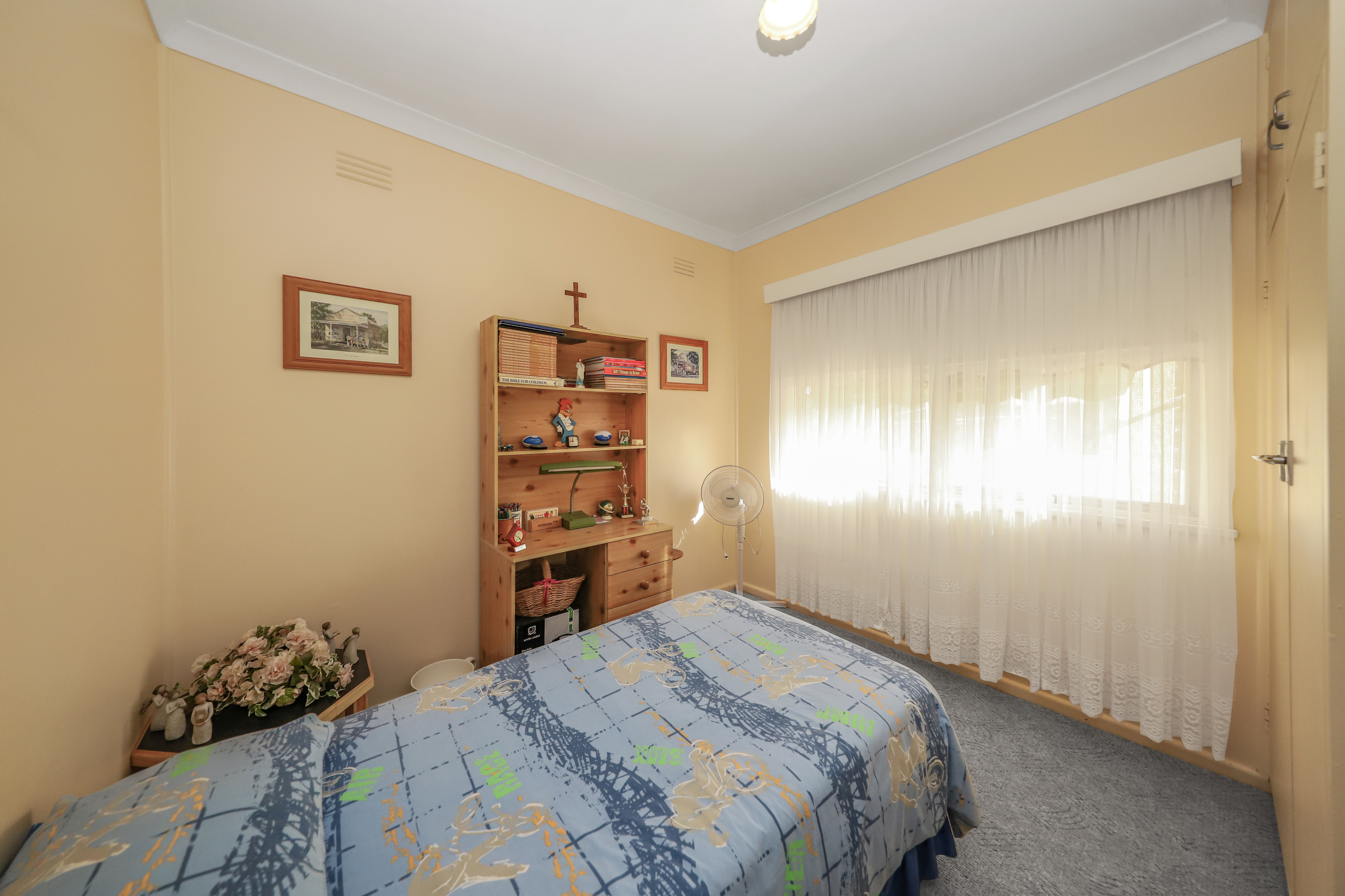 Top of the Town! - Set on a block size of approximately 790.4m2. - Three bedroom brick home with built in robes. - Kitchen featuring electric cooking + combined dining room. - Bathroom includes shower & bath + separate toilet + additional bathroom down stairs. - Wood fire heating, split system, evaporative air conditioner & ceiling fans. - Front verandah with lovely views of the hills afar. - Double garage under roofline with electric roller door to one side, decked out as an entertaining area + under floor storage. - Fully enclosed yard + pressure pump & poly tank.