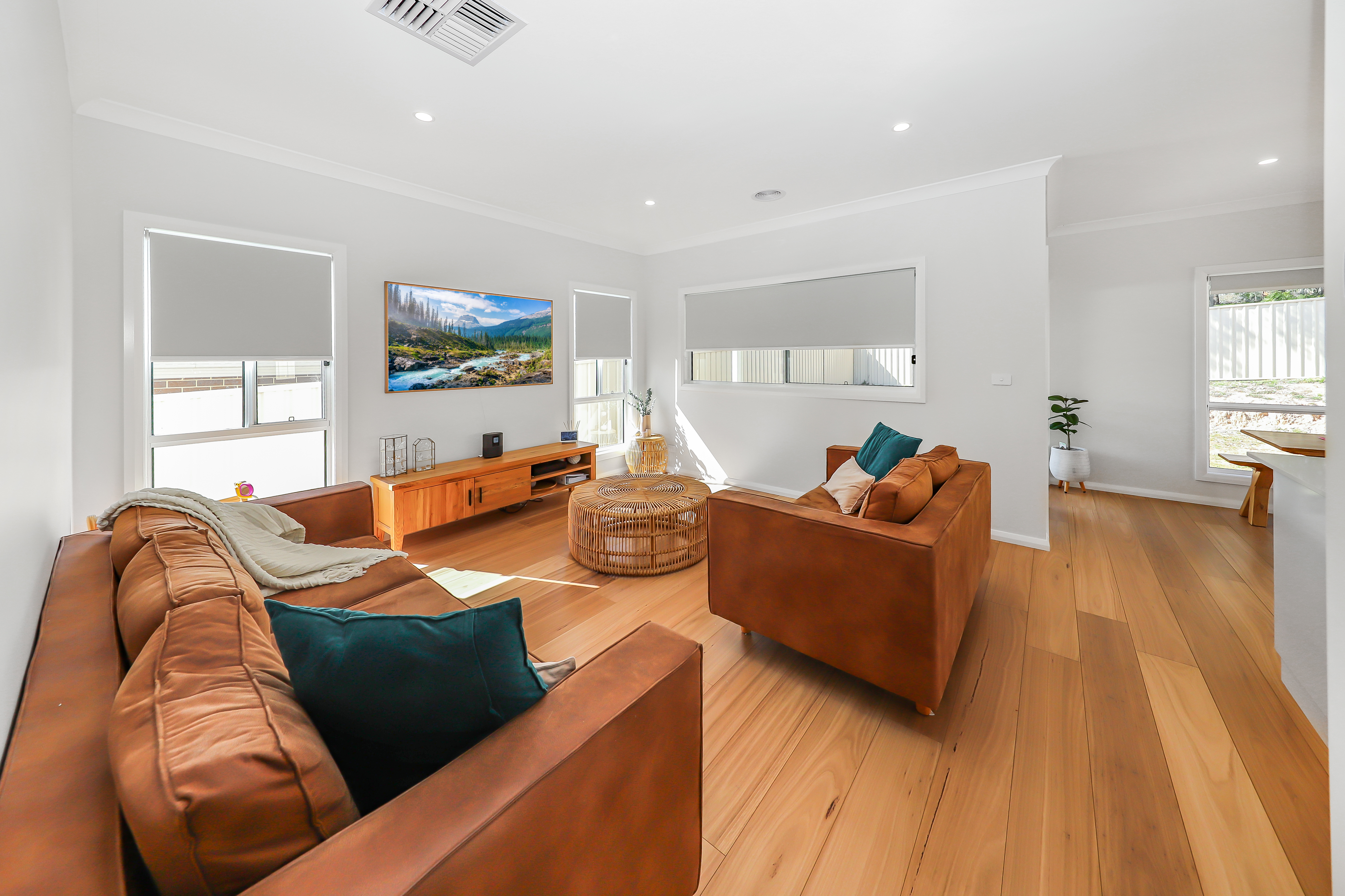Ducted evaporative cooling, ceiling fans and ducted natural gas heating are all on offer for heating and cooling and together all ensure all year round comfort.