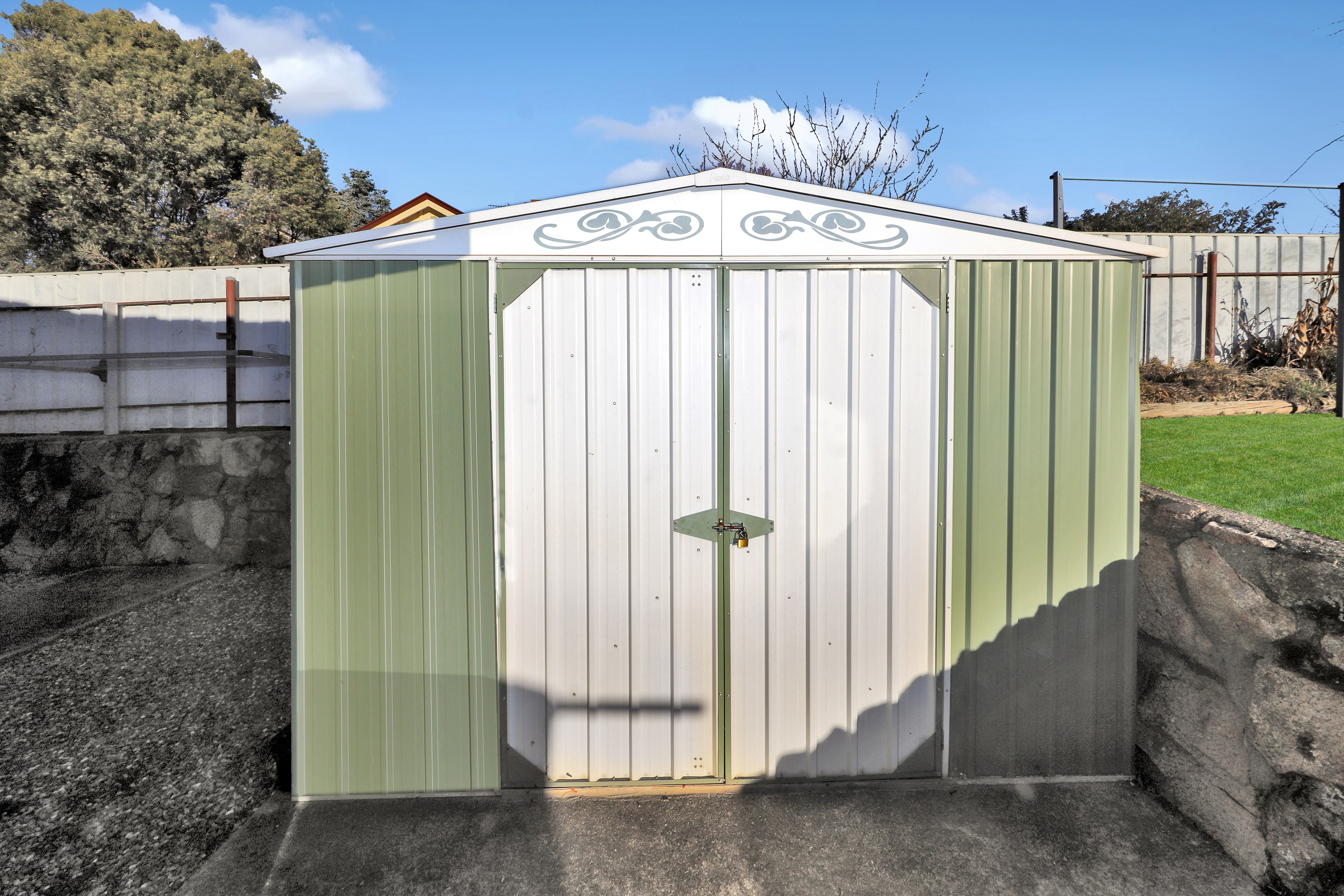 The property also boasts a carport space that offers an additional enclosed storage room,